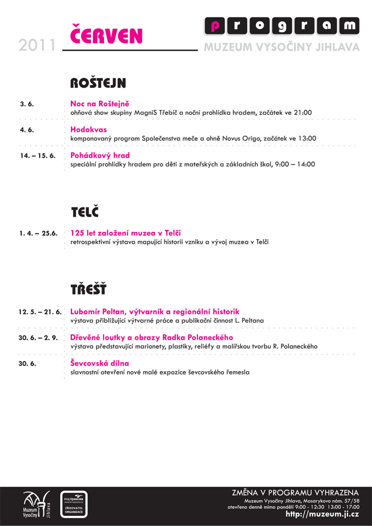 Muzeum Vysočiny – program Roštejn, Telč a Třešť by Eva Vařejčková · Published 4.6.2011 · Updated 6.6.2011