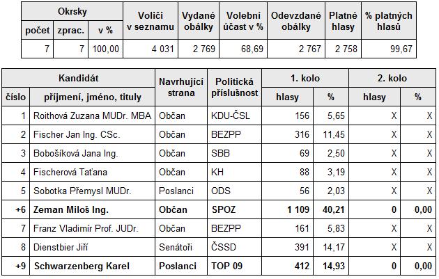 Výsledky prvního kola prezidentských voleb v Polné se od těch celostátních dost liší: